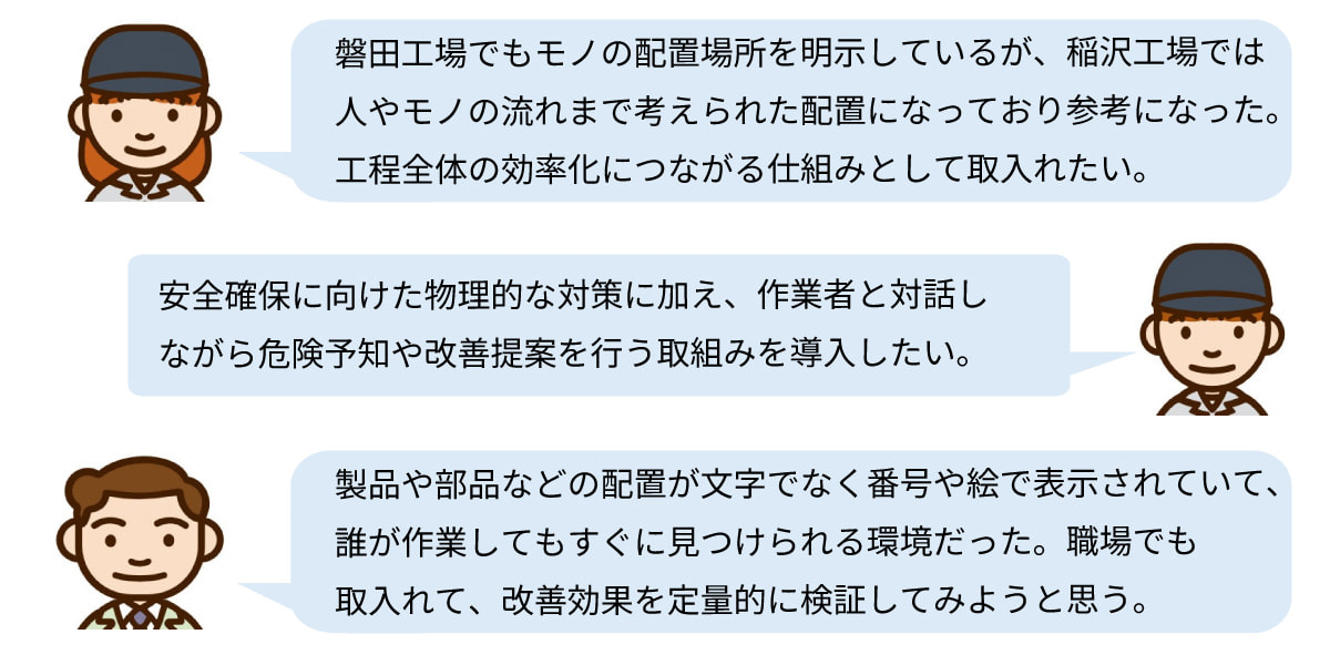 今回の製造ノウハウ展開の取組みを通じて、現場での有効な改善内容の気付きに加え、改善への意欲をより高めることができました。今後もグループ全体の生産管理力およびコスト競争力の底上げに向け、EF活動の展開を図ってまいります。