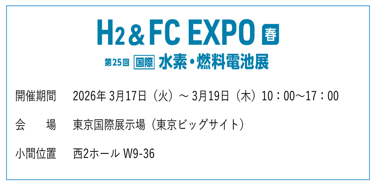 2026年3月17日(火)~19日(木)の3日間、東京ビックサイトで開催される「第25回 H2&FC EXPO 水素・燃料電池展」に出展いたします。